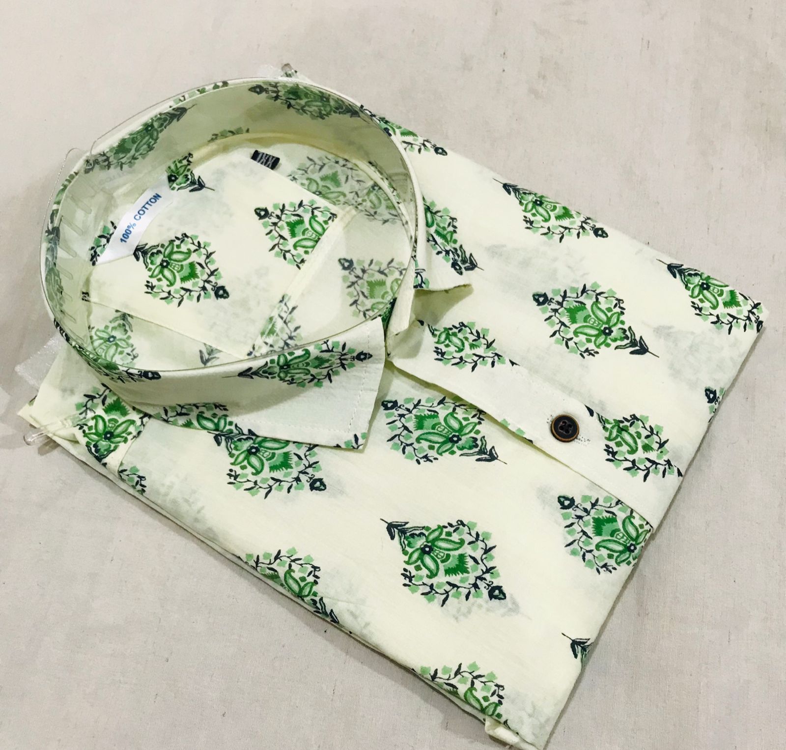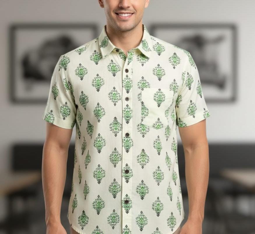 Pure cotton hand printed men's "Mughal" shirt in half sleeves.