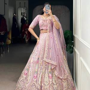 This pastel lehenga choli is a masterpiece of intricate embroidery and timeless elegance, crafted to make every celebration unforgettable 🤍💜