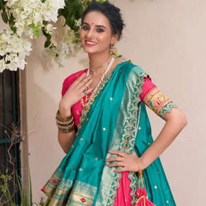 #lehenga#halfsaree#paithanicollection#lehengacholi#marathimulgi#paithanilehengacholi#marashtrianbride#paithanistyle#marathibride#embroidery#jacquardsilklehenga#marathiculture#maharastrianwedding#maharastrianwomen#punyavachan